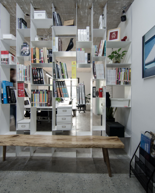 2、書(shū)架用金屬材料連著天花板,又能起隔斷作用,還能放裝飾品和書(shū)籍,簡(jiǎn)單又實(shí)用。